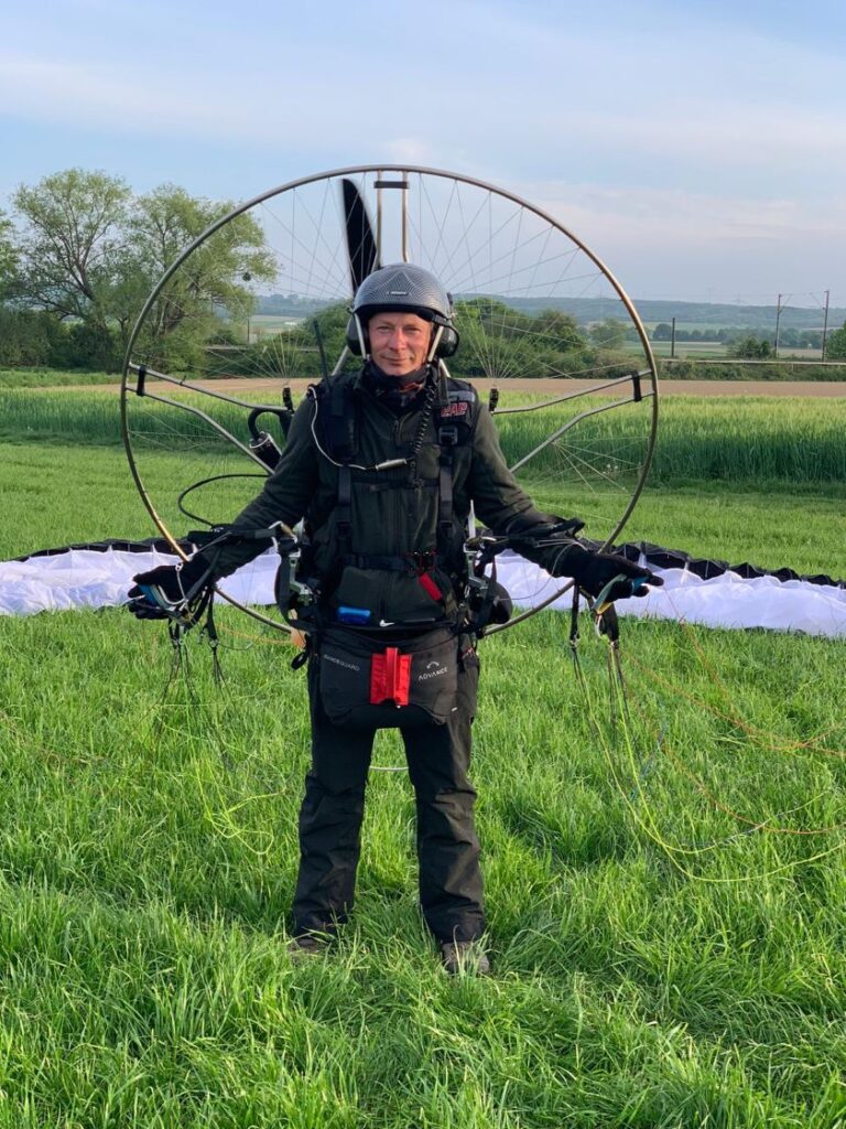 Unser zweiter Vorsitzender mit seinem Rucksackmotor.